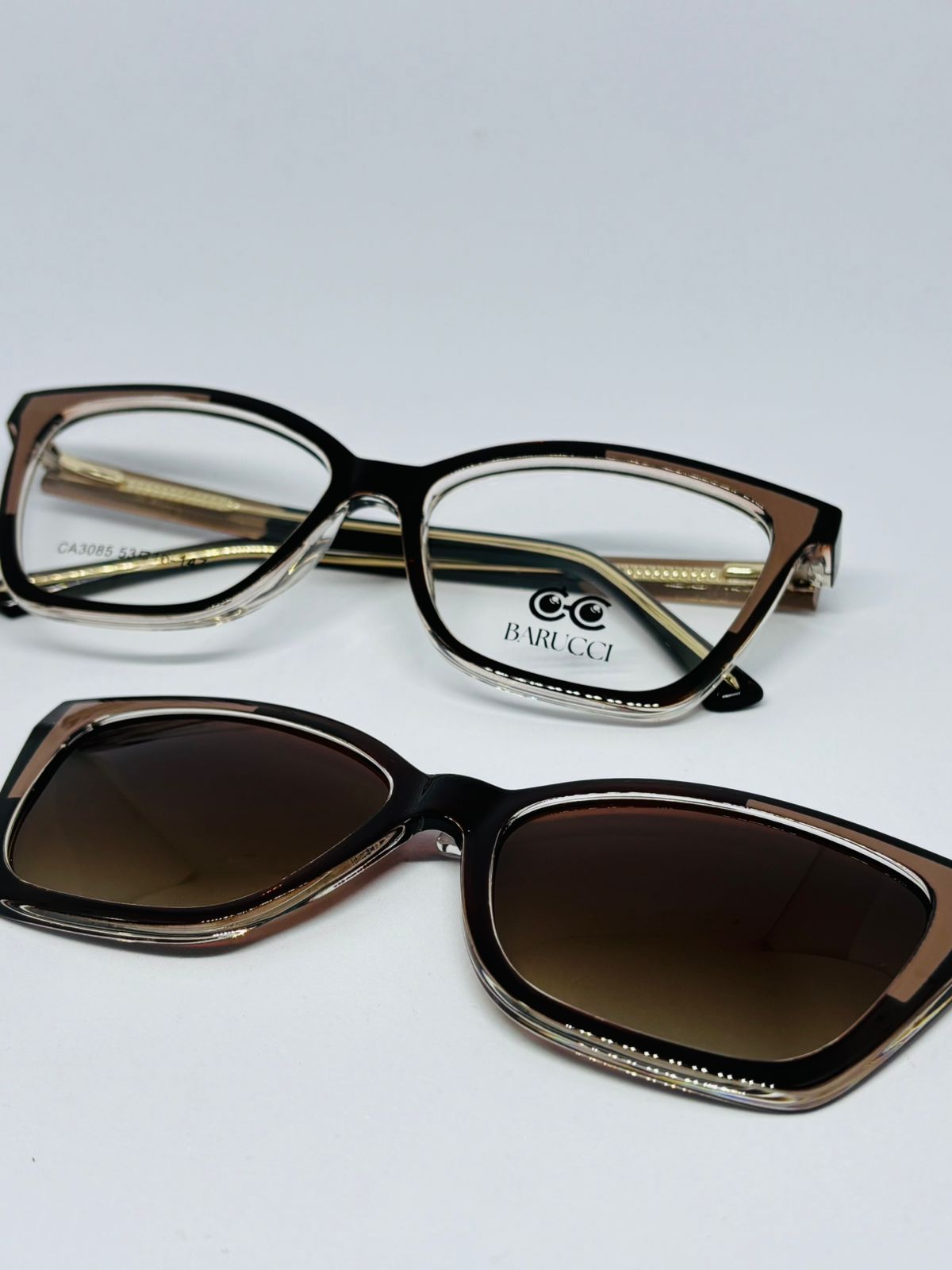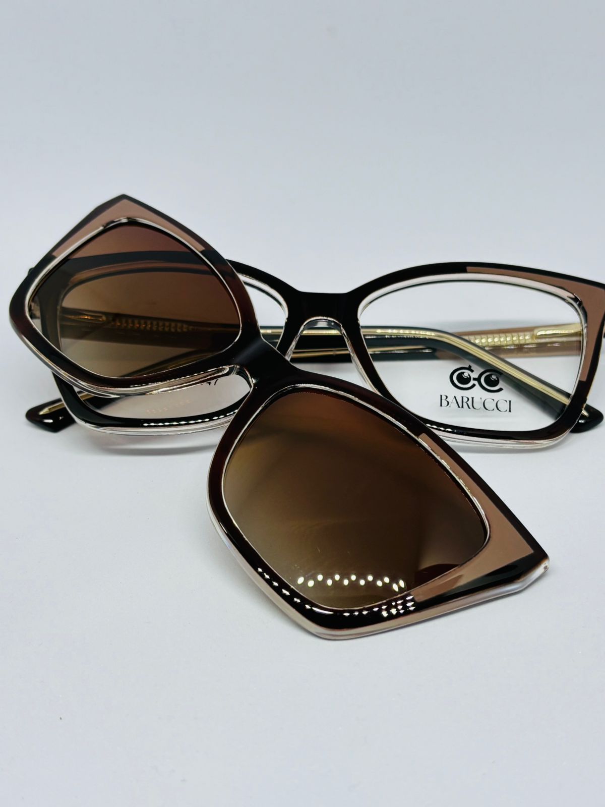 As armações clip-on femininas permitem transformar seus óculos de grau em óculos de sol em segundos